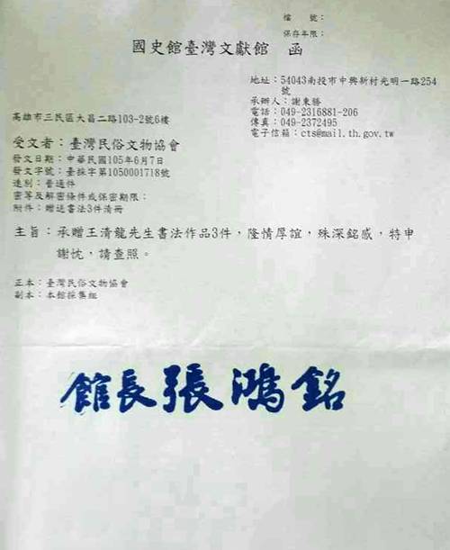 “台湾民俗文物特展暨两岸水墨书画名家邀请展"作品(被台湾国史馆收藏)