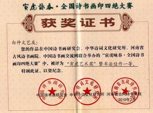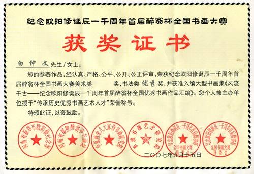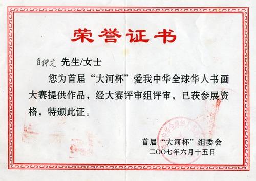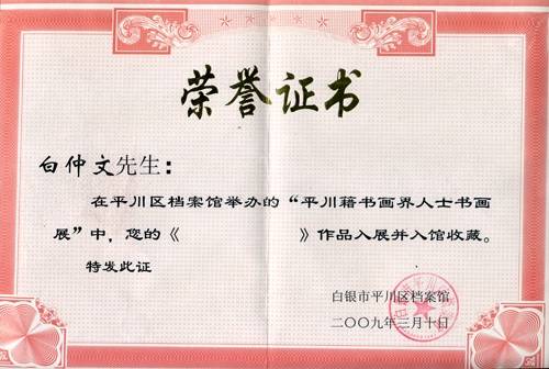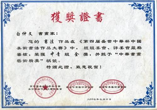 白仲文证书