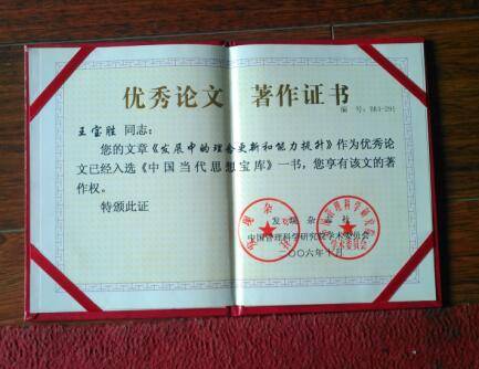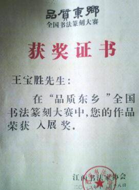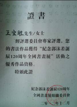 王宝胜荣誉证书