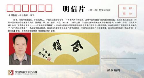 许飞书法作品参加一带一路的“中国名片”出版限量版珍藏邮册