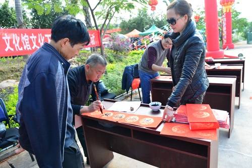 2017年元旦这天, 正值云南省双柏县大麦地镇一年一度的彝族开街节。四面八方的少数民族都穿着盛装,欢聚一堂。在这欢庆的节日里,双柏县的图书馆·文化馆在镇政府的支持下举办了文化下乡,免费赠送春联的活动。与此同时,深受人民爱戴和热情拥护的书法家蒋斗贵先生也积极组织了五名会员驱车前往现场开展免费书送春联活动,表达他们对文化艺术的热爱和对人民的关爱。喜爱书法艺术和春联的彝族群众争相认领,几位艺术家虽然辛苦,却乐此不彼,看到群众的喜悦,他们也深感欣慰。此举不仅丰富节日气氛,同时带去了党和政府的问候和温暖,深受各界好评。几位老师的现场挥墨,也为今天的开街节增添了一片生机和朗朗笑声,成了一道美丽的风景线。蒋斗贵先生作为一名具有影响力的书法家,他也真心希望双柏县的文化越来越好,能够真正的融入到群众生活中去。