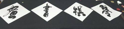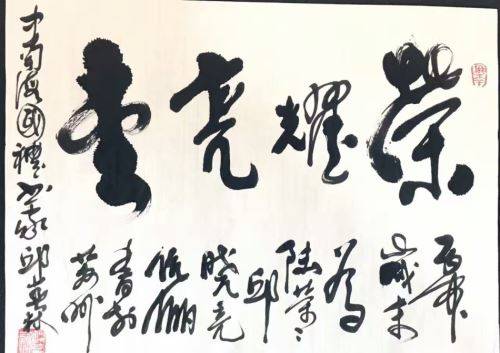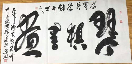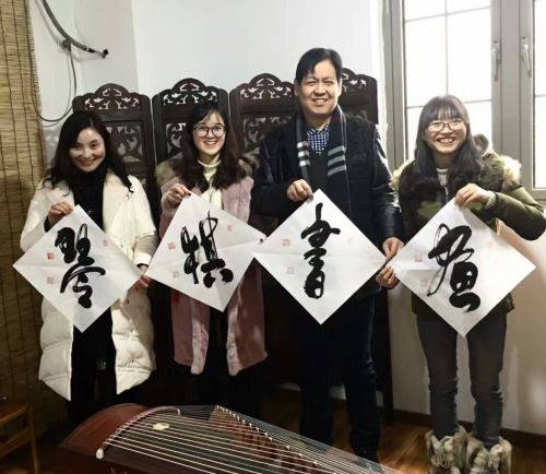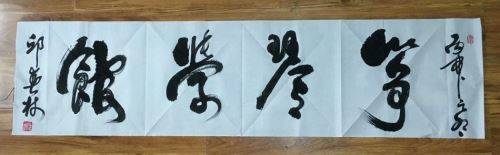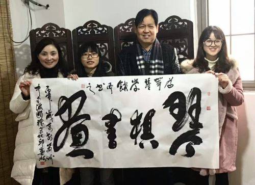 在美丽如画的苏州,应邀为首屈一指的筝琴学馆现场挥毫,即兴题出横匾《筝琴学馆》之馆名,另榜书《琴》《棋》《书》《画》四幅斗方整字棱形屏作等。虽已放寒假,亦有部分教职员工现场笔墨伺候并合影留念。仅以此作祝福苏州筝琴学馆新年新气象、好馆好运程!