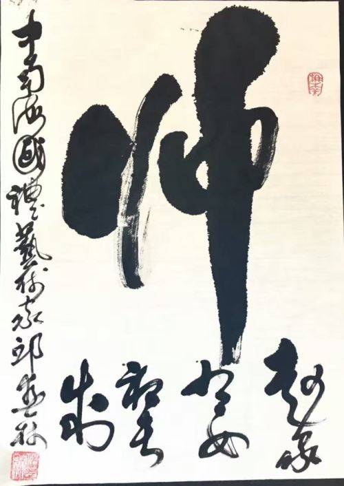 在苏州斯地,有一刚在苏大毕业的小女子,却不惜花钱要为鸡年进入五十岁的母亲求《福》字,其精神可贵、其孝心可赞!因受感动,特为其名帅而另赠出小斗方《帅》字,并赐小字曰: