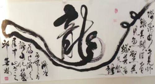 邱春林在上海龙文化大楼书“龙”与青龙古寺天然相合