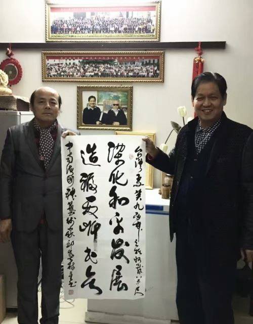 各地部分收藏家有幸求得笔者重书台湾马英九、连战收藏《两岸一家亲》《深化和平发屠造福两岸民众》作品掠影: