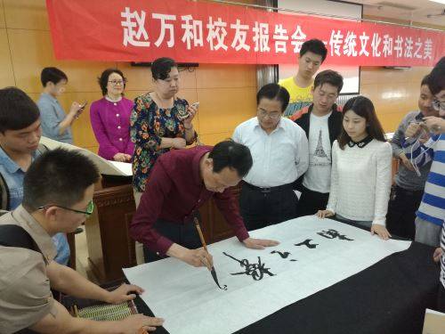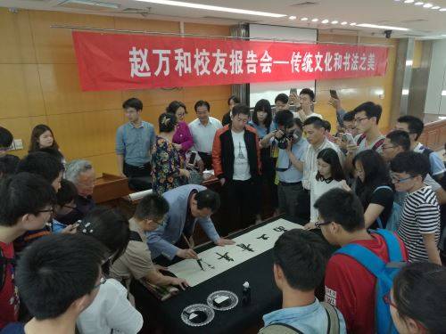 习练书法不光有助于传承中国传统文化,同时,对个人的生活、自身的发展也是相当有裨益的。据赵万和介绍,老年人学书法有益于健康长寿,成年人学书法有利于提升修养,孩子们学书法有利于身心健康和培养良好的学习态度,大学生学习书法有利于塑造高素质人才。演讲最后,赵万和与在场的书法爱好者分享了自己学习书法的独到见解和经验。