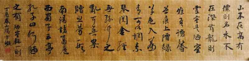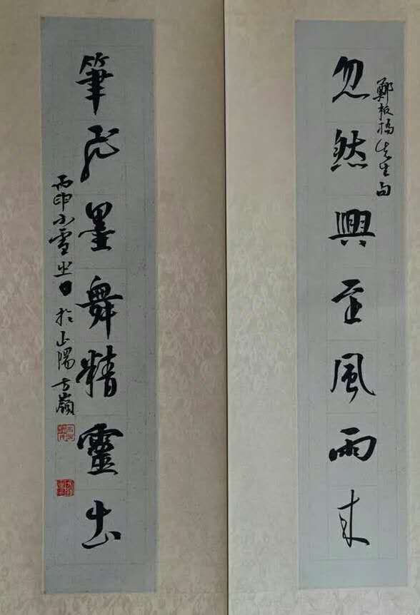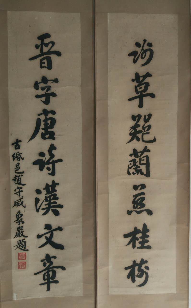 所展示作品为赵慕鹤先生书法。 赵慕鹤先生久居台湾,所写鸟虫体书法为我国传统文化即将失传的一种书体。上世纪八十年代末,大陆、台湾互通后,赵慕鹤先生知其后人酷爱书法,回家省亲时带来众多碑帖,亲授亲传,使赵方领书法得以长进。