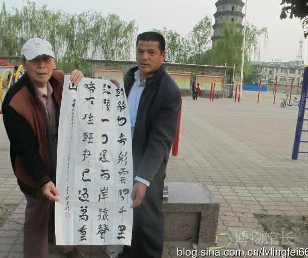 赵方领二祖父赵守威先生为当地文化名人,隶、楷、行皆能,为方圆百里书写经文、碑刻之能手。十年前,我在一村旁,发现其碑刻,所写楷书,工整有力,为之惊叹!按图索骥,寻其后人,欣喜获悉赵方领为之后,始明白赵方领酷爱书法之渊源。