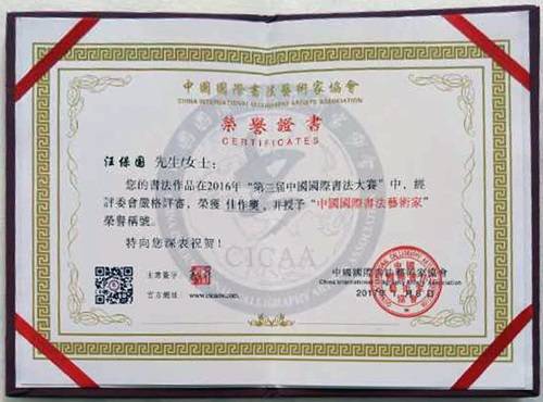汪保国证书