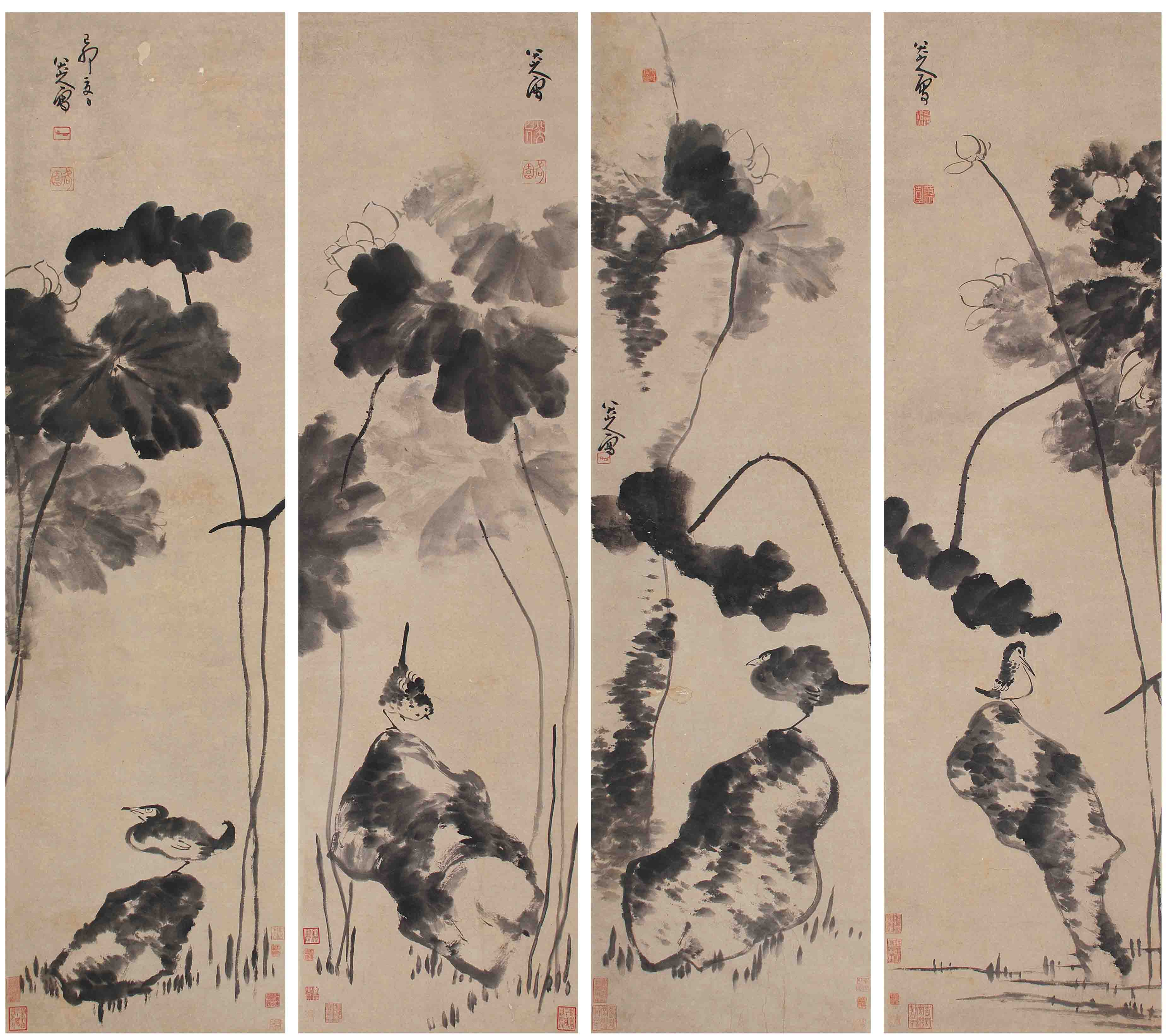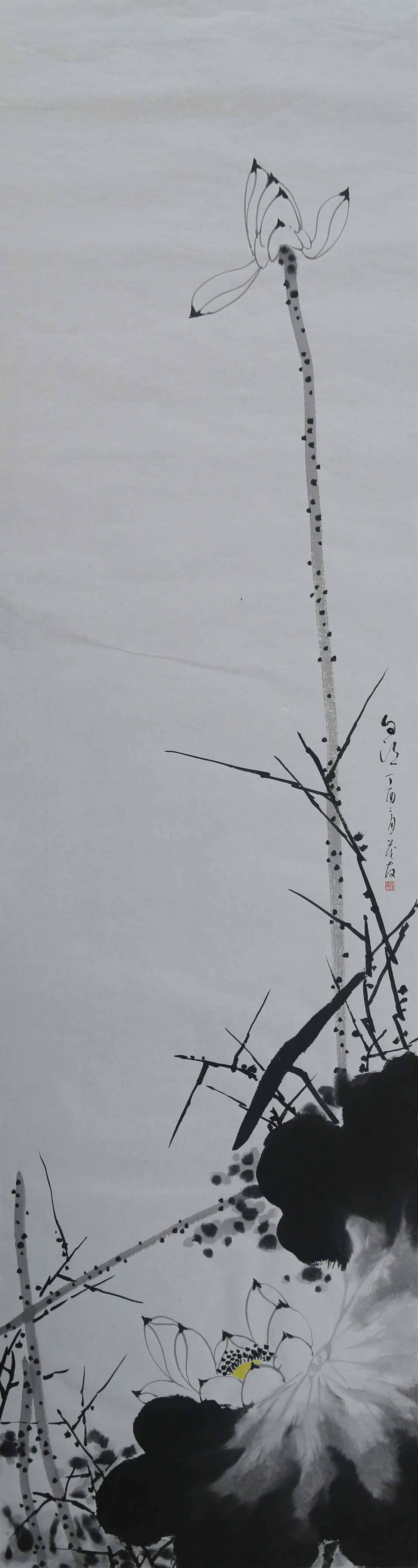 阅览中国水墨发展史,荷花是八大山人最得意的画题,他爱荷、写荷、画荷,荷花是他艺术生命中的重要组成部分。其墨荷艺术独步古今,纯以笔墨取胜,罕见用色,其笔墨和形式简练的背后,给人留下了无穷的审美空间。