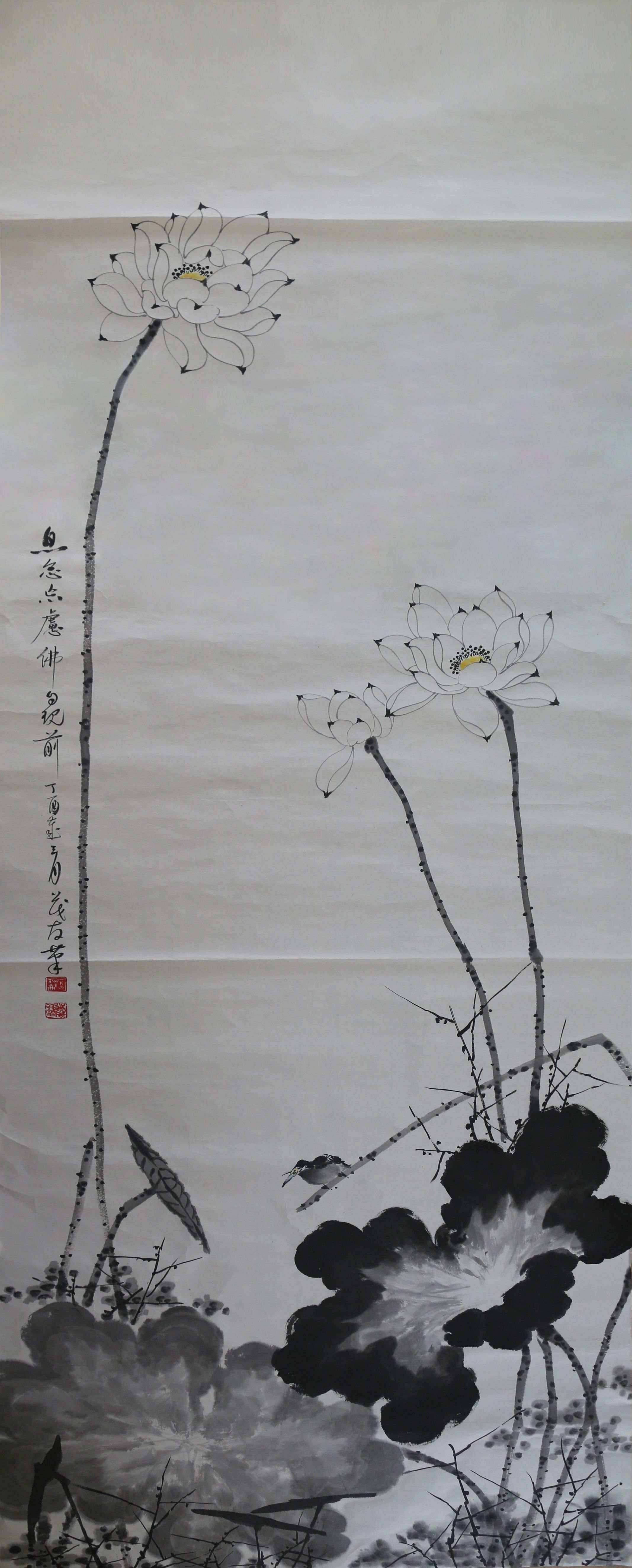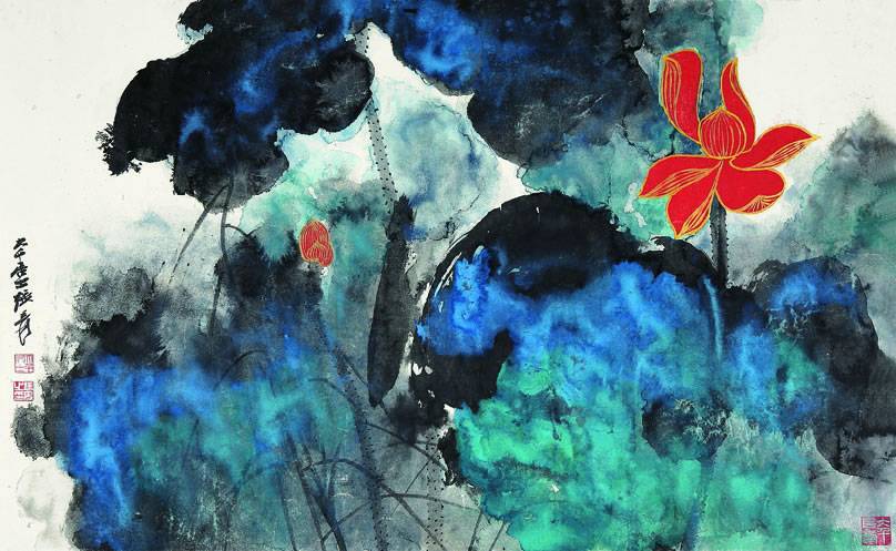从艺术创作的角度来看,蔡茂友秉承了文人画的传统,他以荷花为题作画是静修和反省。他对古今中外的种种画风有着广泛的兴趣,他于抽象主义和表现主义别有会心,于历代画荷名家沾溉更深,拓宽了水墨荷花艺术表现的广度,在一个更为广阔的时间与空间中去升华荷之禅境。