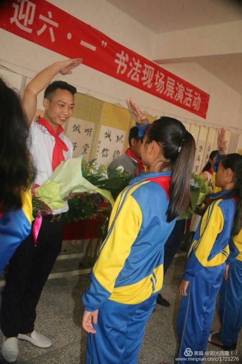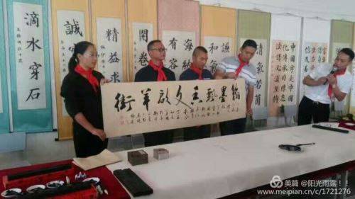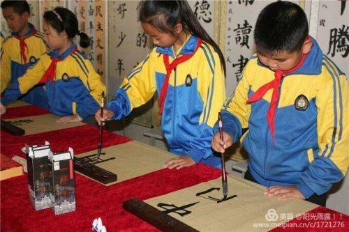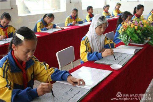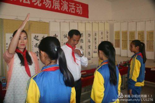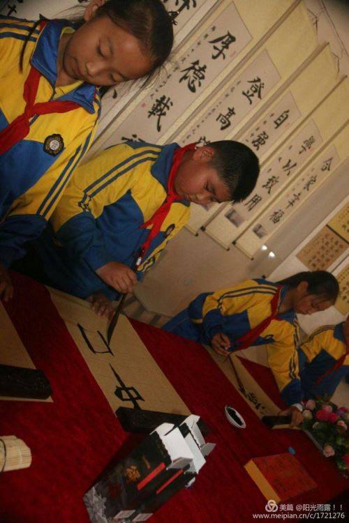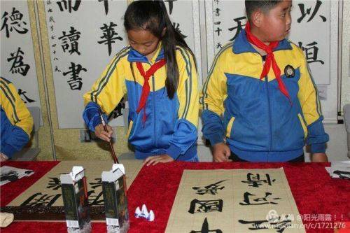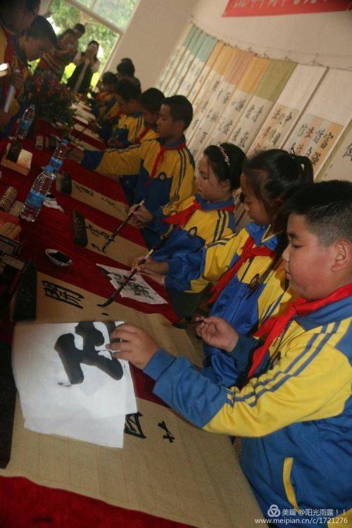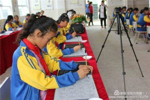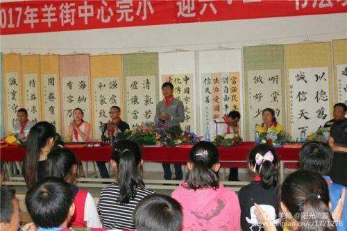 文启羊街”。随后,在优美的乐声中,学生现场书法表演开始,参加活动的有来自羊街中心完小及友邻学校的小