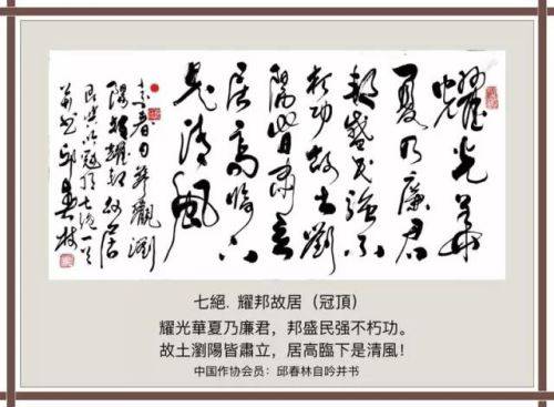 现系中国作家协会会员,中华诗词学会会员,中国国学学会(国学杂志社)副理事长,中国数字艺术馆终身馆长,政协书画院终身名誉院长,中国公益网书画院名誉副院长,中华书法家协会副会长,台北故宫书画院、京都书画院名誉院长,中国网教中心客座教授,中华邱氏联谊总会名誉会长,全国学生优秀作文大赛组委会特邀评委等。
