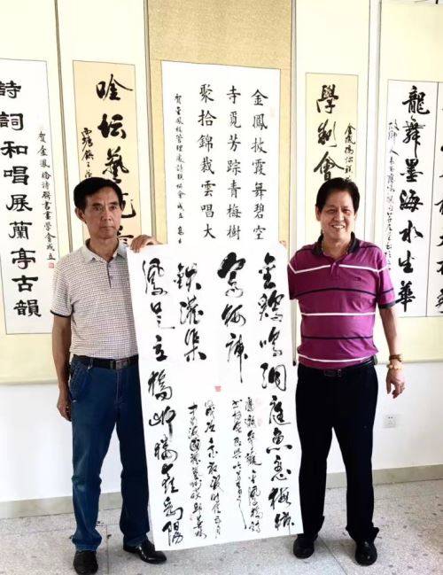 应金凤桥诗书画协会盛邀参观即兴吟赠楹聯一幅: