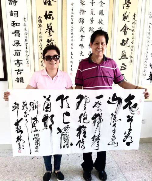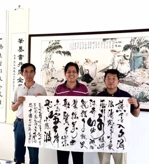 中国作家、中南海国礼艺术家邱春林丁酉荷月应邀在湖南工作室现场挥毫纪实