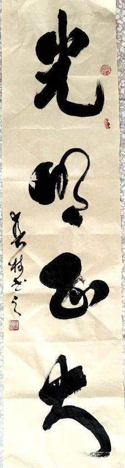 应金凤桥诗书画协会常务副主席和秘长之嘱,乃分别嵌名榜书《光明正大》《岗位重要》两条幅。