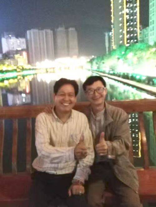 注: 丁玉辉先生是中国电力知名散文作家、中国散文协会会员。今年三月有幸同赴江西南昌参加《作家报》年会并同住一室,一见如故且相识狠晚。此次知悉笔者来到云贵,专程从北京返回贵州黔南,特邀吾到贵州少数民族聚居地的黔南地区釆风。文友有缘,二人相见甚欢,丁兄亲自驾车奔赴黔南各地,从家里拿出珍藏多年的茅台陈酒,带上自己的发小同窗,专门挑选斯地别具特色风味的餐馆进食。相聚之欢,开心畅怀;所到之处,养眼悦目;彼此情义,不亦乐乎也!