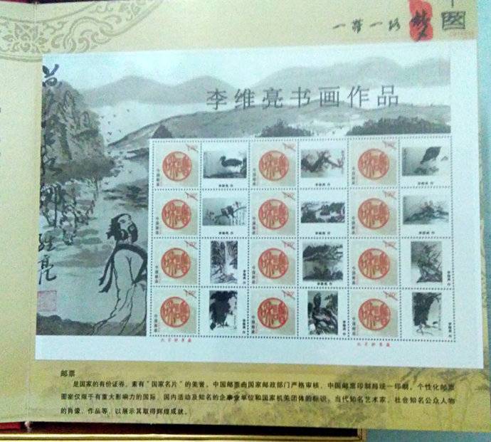 李维亮的书画被中国邮政集印出版发行